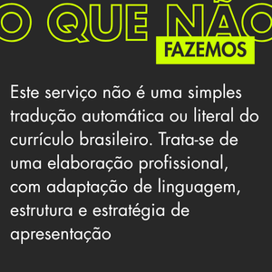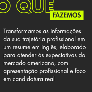 Nossa equipe elabora seu resume em inglês, com redação adequada ao padrão esperado por recrutadores nos Estados Unidos.
